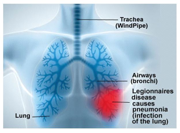 Legionnaires’ disease is a severe form of pneumonia. The incubation period is 2 to 10 days and rarely up to 20 days. Legionnaires’ disease usually lasts for weeks, with a fairly high mortality rate. Legionnaires’ disease is often initially characterized by anorexia, malaise, lethargy and a mild unproductive cough. Though most symptoms are non-specific, they include: Loss of strength (asthenia), High fever, Headache, Chills, Muscle pain, Difficulty breathing, Chest pain, Diarrhea, Vomiting, Nausea, Central nervous system manifestations, such as confusion and delirium, and even Renal failure (World Health Organization, 2007).