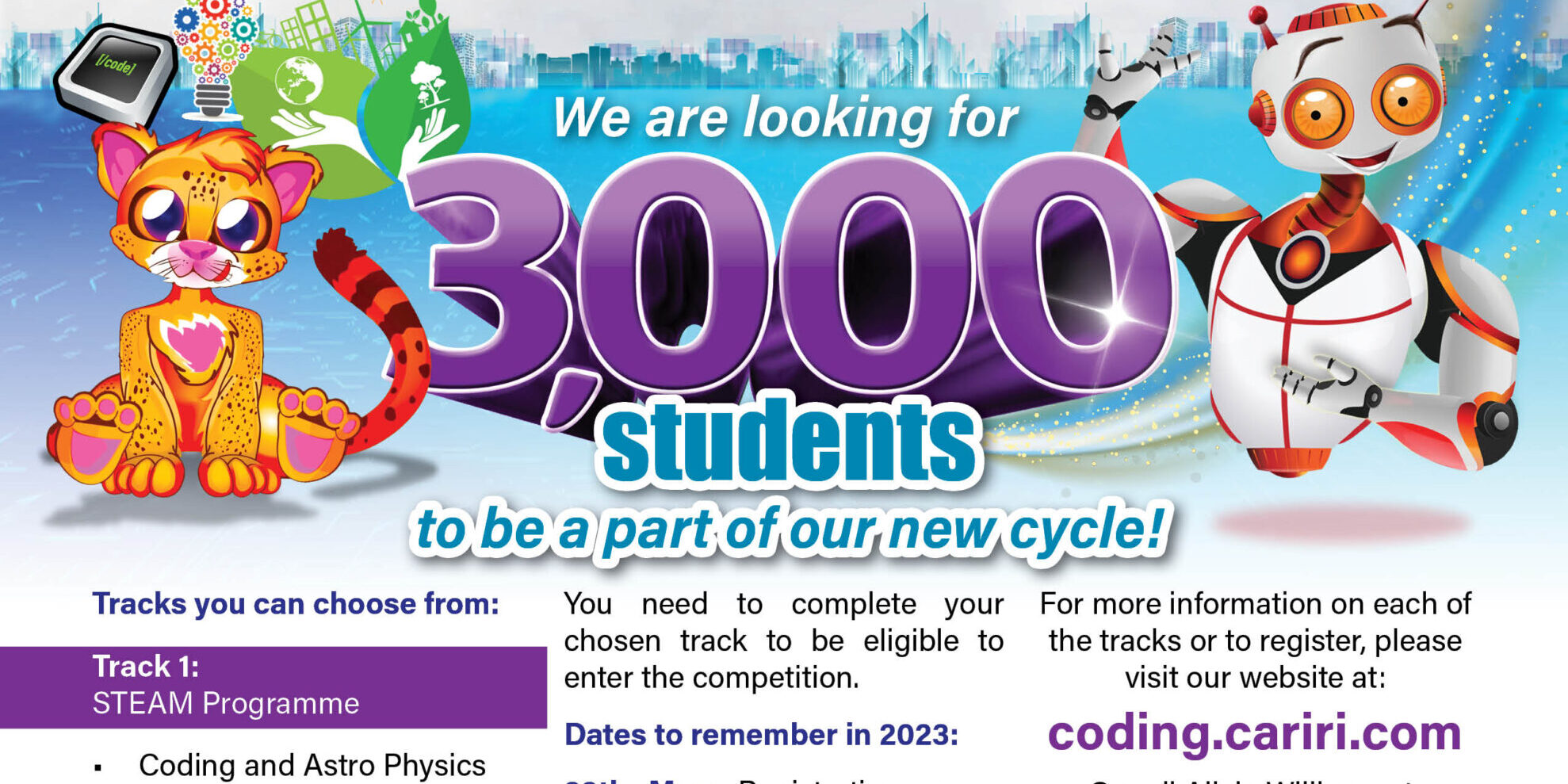 This programme is virtual and self paced, meaning students can choose when to complete it and is open to students between the ages of 10 to 18 years old across Trinidad and Tobago.
