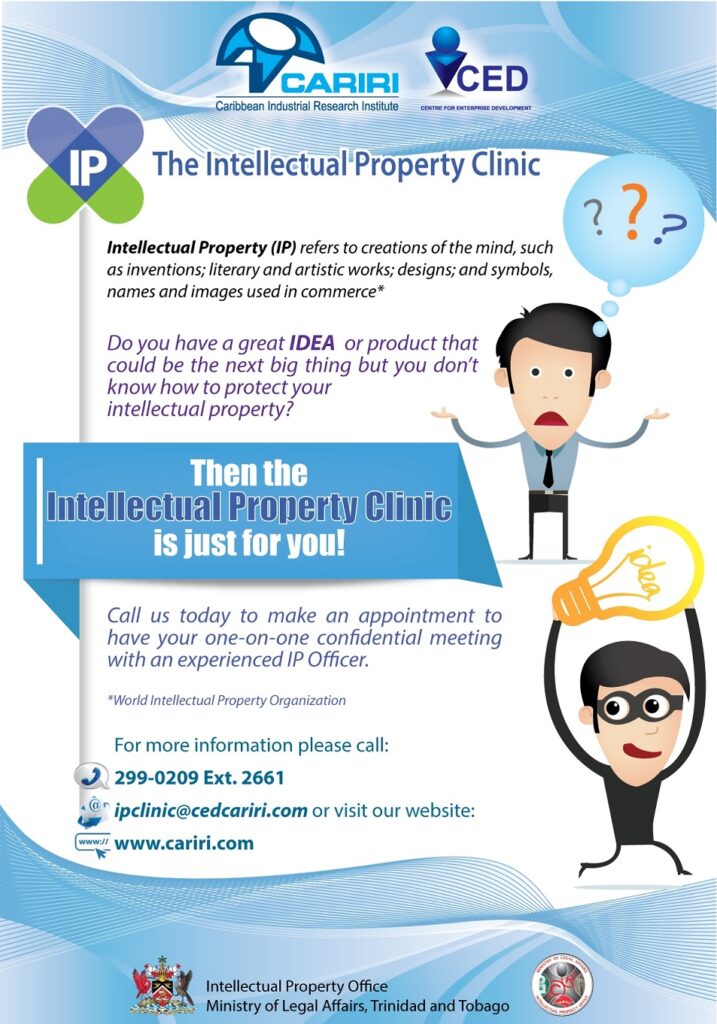 The Caribbean Industrial Research Institute (CARIRI) and the Intellectual Property Office have teamed up to host ‘The Intellectual Property Clinic’. The first of its kind in Trinidad and Tobago, The Intellectual Property Clinic will seek to bridge the gaps in knowledge, provide a competent base to gather information and allow you to understand your rights.